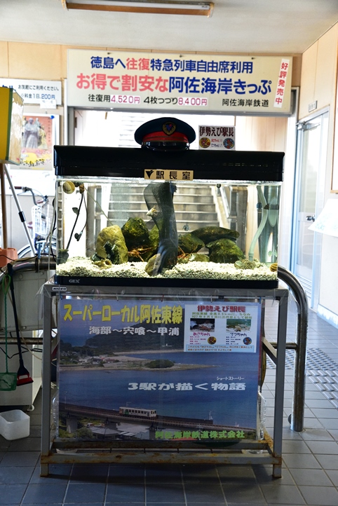 3駅しかない路線の中間駅である宍喰駅では(流行りの?)動物駅長が。