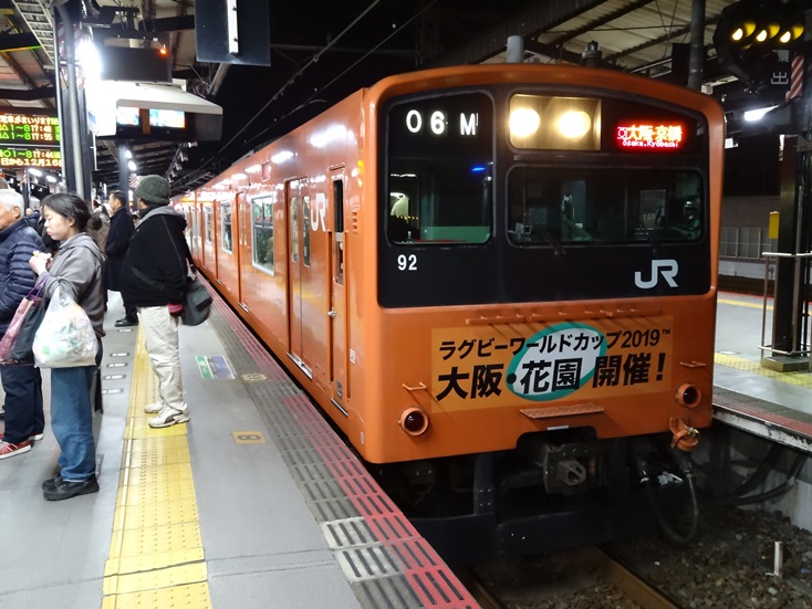 201系にラグビーワールドカップのHMを付けた列車に遭遇。