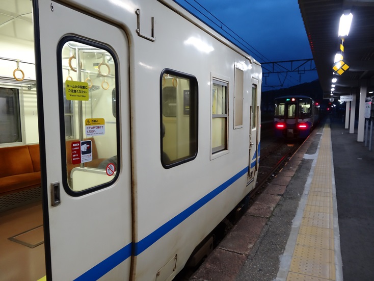 乗換は同じホームの前後で列車が停まるんですね。(手前があいの風の車両)