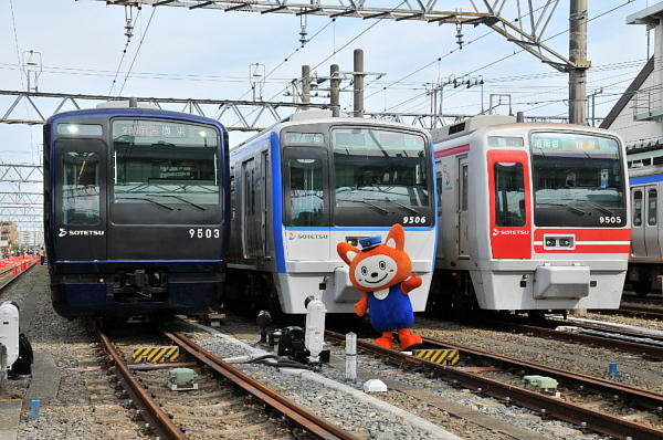 旧9000系(原色)、現9000系と3本並びの撮影会です。