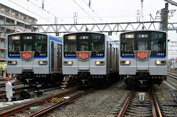 今日は相鉄で、新7000系シリーズ第2弾の鉄道コレクション「相鉄 新7000系 (新塗装)2両セット」の発売を記念して「新7000系新塗装車両を3編成並べた撮影会」が相模大塚構内で開催されました。