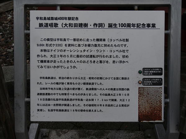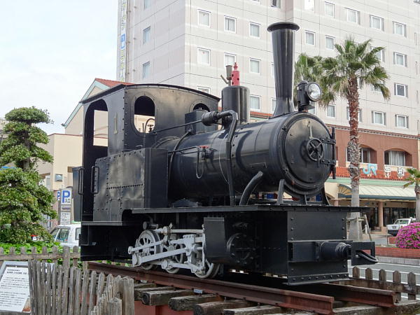 宇和島駅の駅前には、軽便鉄道であった宇和島鉄道時代のコッペル社製1号機関車(ケ220)の復元がありました。