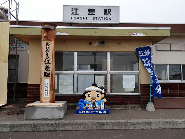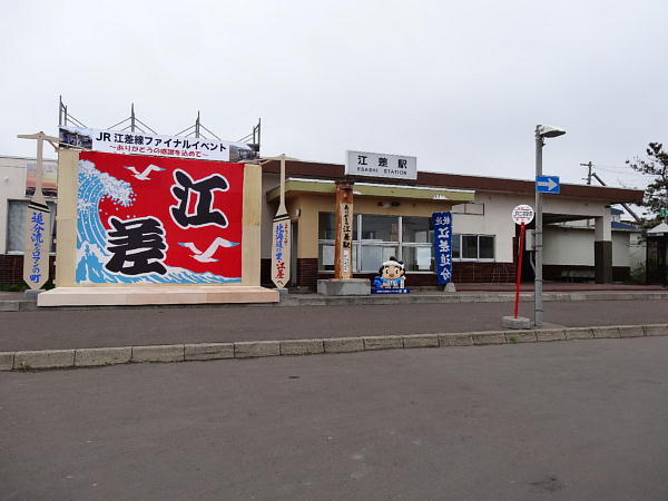 昨年の訪問時には無かった「ありがとう江差駅」の看板も出来ていて。