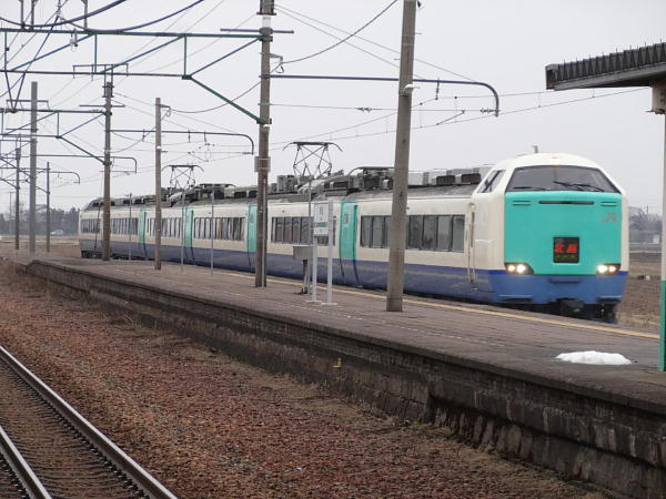撮影後に駅で待っている間にR編成の北越が通過。
