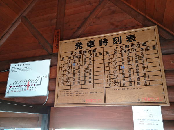 駅内部に入ると、時刻表が木製でした。