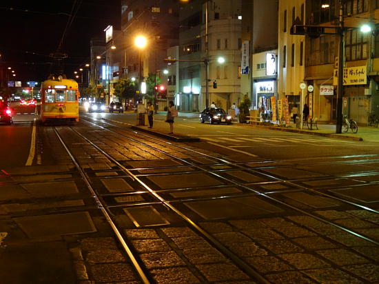 伊予鉄道の大手町付近で平面交差するポイントにて路面をカシャッと。
